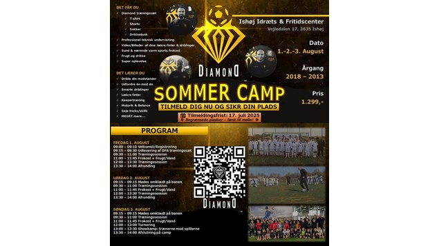Diamond Sommer Camp lover en kombination af læring på højt niveau, fællesskab og sommerstemning. Tilmelding kan foretages via Facebook-opslag, og arrangørerne understreger, at pladserne hurtigt bliver fyldt op.