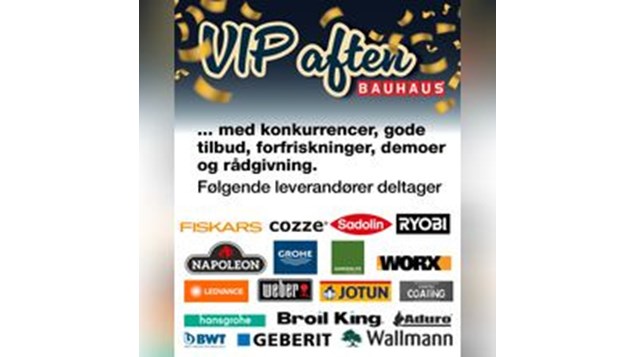 Den 30. september 2025 inviterer Bauhaus Ishøj til en eksklusiv VIP-aften fra kl. 17.00 til 19.00. Arrangementet er åbent for alle, og byder på en unik mulighed for at få ekspertrådgivning fra en række leverandører.
